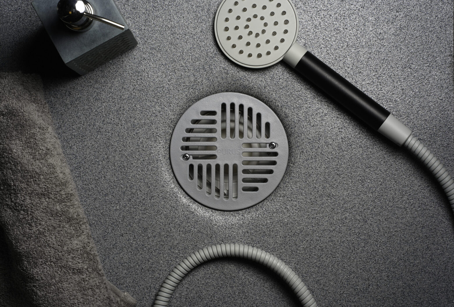 The Purusline Living Plus comes with a removable NOOD no-odour water trap, stainless steel clamping ring, stainless steel patterned Chess grate and a concrete installation kit. Please note that the Purusline Living Plus, in accordance with building regulations in some markets, must be installed at least 200mm from the wall. Check the applicable regulations for where the installation is to take place.